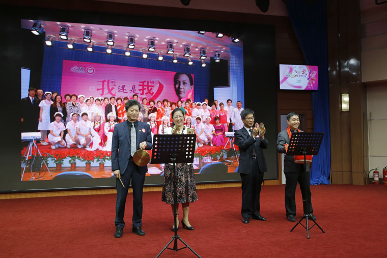 河北省抗癌协会副理事长、我院副院长耿翠芝和刘运江两位教授分别讲话。他们回顾了康馨家园风雨10年的艰辛历程,也现场普及了科学抗癌、报团取暖的防癌抗癌知识,更对现场参与活动的人员寄予厚望和祝福!接着便是精彩的医护人员和患者团队自编自演的联欢活动,参加活动的有84岁高龄奶奶的新疆舞蹈、有癌龄将近10年直肠癌患者、更多的是乳腺癌病友们,来自邢台沙河市乳腺癌快乐家园的乳腺癌病友们也友情出演“孙氏太极拳”。耿翠芝、刘运江、宋振川和李海平4位教授也联袂登台表演三句半,更有乳腺中心漂亮美丽的青年护士表演的压轴大戏手语节目“感恩的心”。医院会场温馨动人、场景令人动容,作为医者,看到我们亲治的患者如此好的心理身体康复,内心无比欣慰!