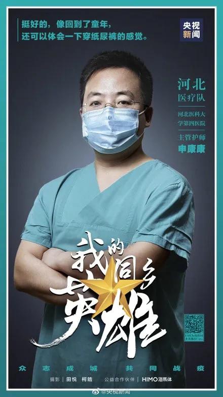 3月3日晚上20点46分,央视新闻官方微博号以我院重症医学科副护士长申康康接受采访时说的“挺好的,像回到了童年,还可以体会一下穿纸尿裤的感觉”形成微博超话:#穿上纸尿裤回忆下童年#,瞬间引起强烈反响。
