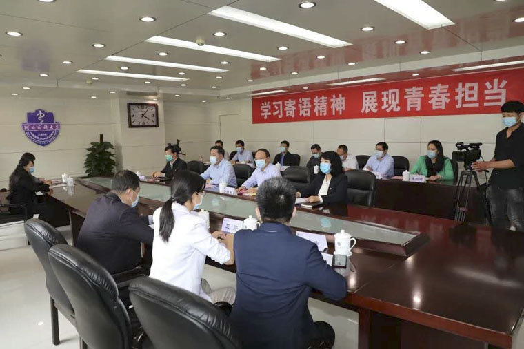 5月6日,学校召开“学习寄语精神,展现青春担当”青年师生座谈会,学习贯彻习近平总书记对新时代青年五四寄语精神。校党委书记翟海魂出席座谈会并讲话。我院重症医学科副护士长申康康作为援鄂青年医护代表在会上做了发言。