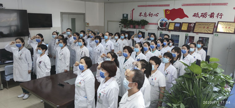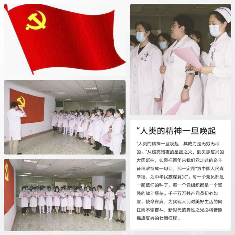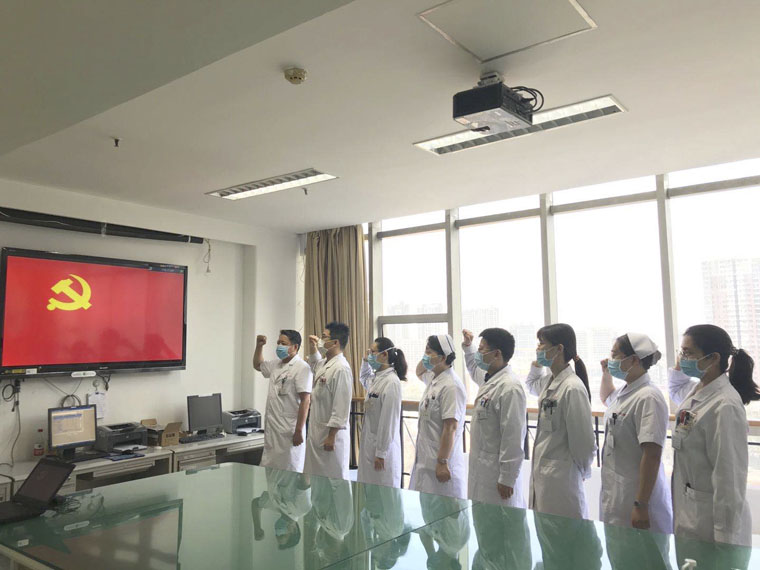 在党的九十九周年华诞到来之际,我院党委组织开展了“迎七一 守初心 重温入党誓词”主题党日活动,纪念我们党栉风沐雨近百载,带领中华民族迈向伟大复兴的光辉历程。医院各支部高度重视、认真组织、积极参与,以创新的形式、丰富的载体,开展党员教育,重温入党誓词。通过主题党日活动,使党员的党性修养进一步提升,理想信念更加坚定。