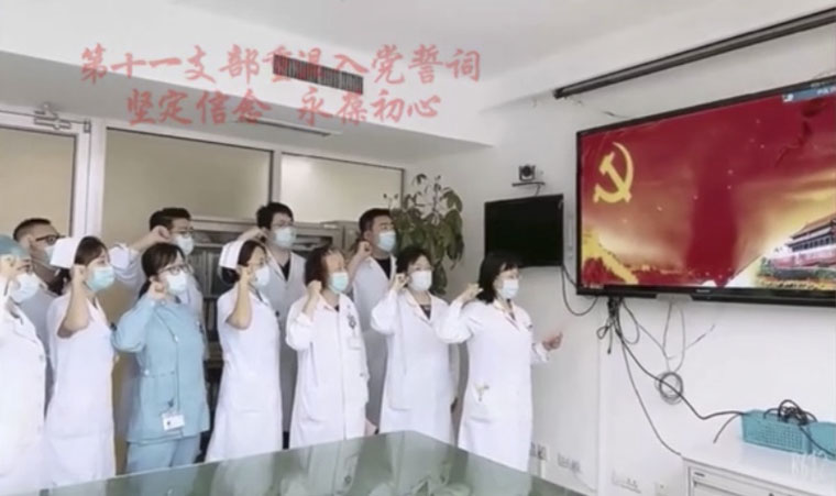 第十六党支部集体观看爱国视频,重温入党誓词。