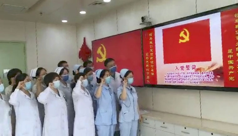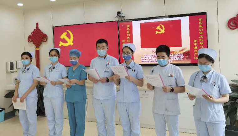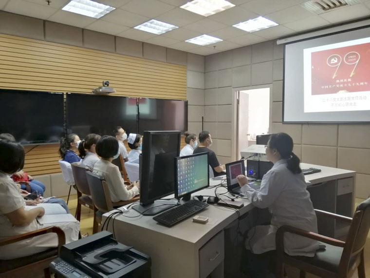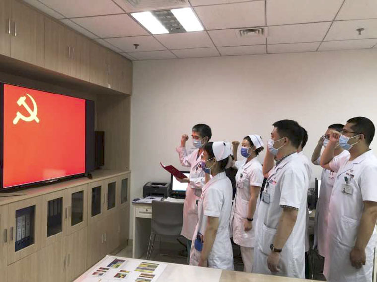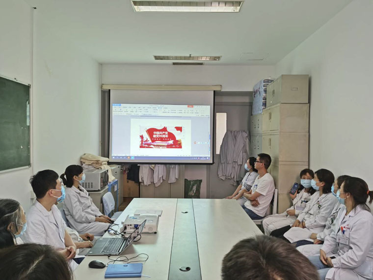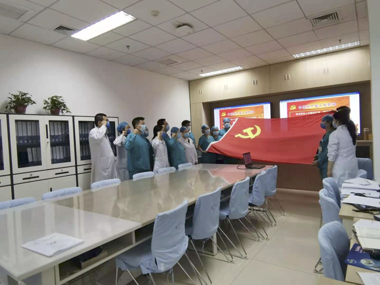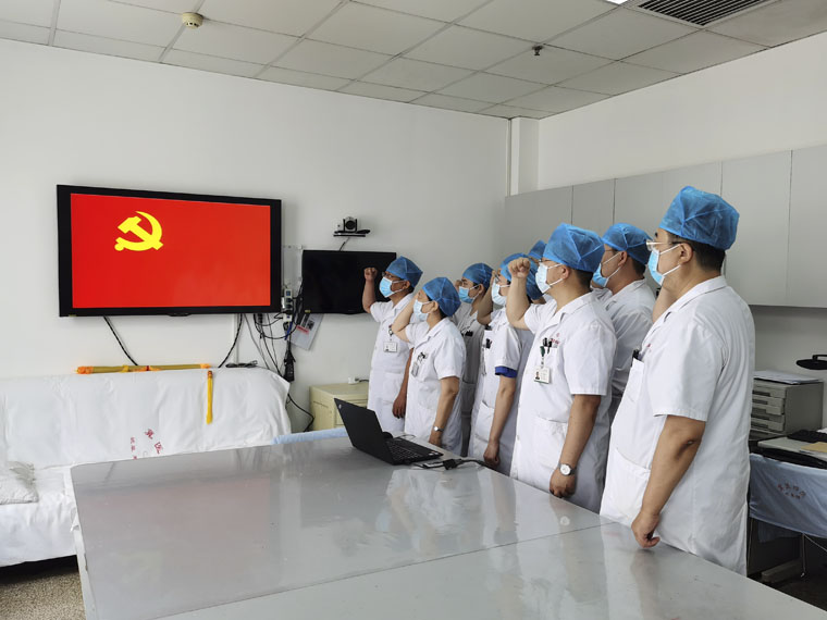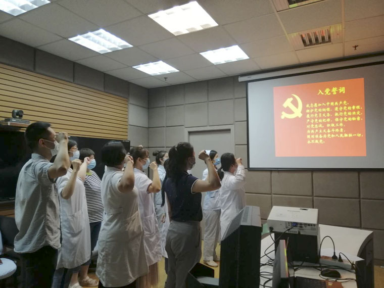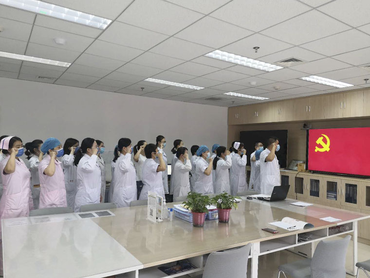 第二十五和四十一党支部组织全体党员观看《从红船到巨轮》纪录片,重温入党誓词;还为门诊患者及家属免费提供矿泉水,热心解答疑问;向新冠核酸检测的同事及家属表达问候。