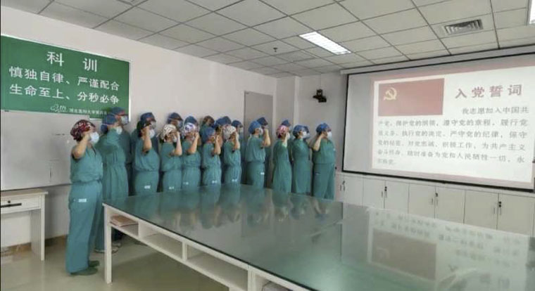 第一党支部重温入党誓词,学习“为人民服务”,“抗疫”党员展风采。