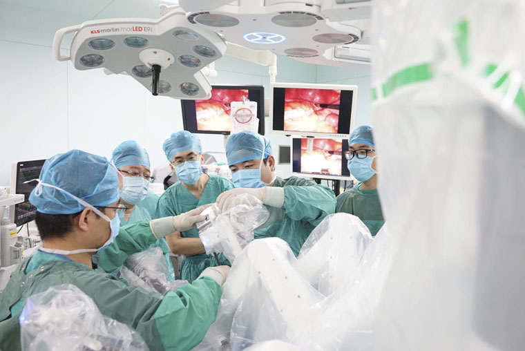 手术当日,麻醉一科有条不紊地完成了麻醉诱导、插管,整个过程患者生命体征平稳。在消毒、铺单后,张建锋主治医师熟练地完成了机器人装机。手术正式开始,在张振亚副主任全神贯注地操作下,机械臂灵活地进行分离、解剖、缝合等操作,仅2个小时就顺利完成手术,几乎做到了零出血。由于腹部只有5cm的手术切口,患者术后几乎没有痛感,仅过3日便可下床活动,术后10日可进半流食,大小便恢复正常,达到出院标准。