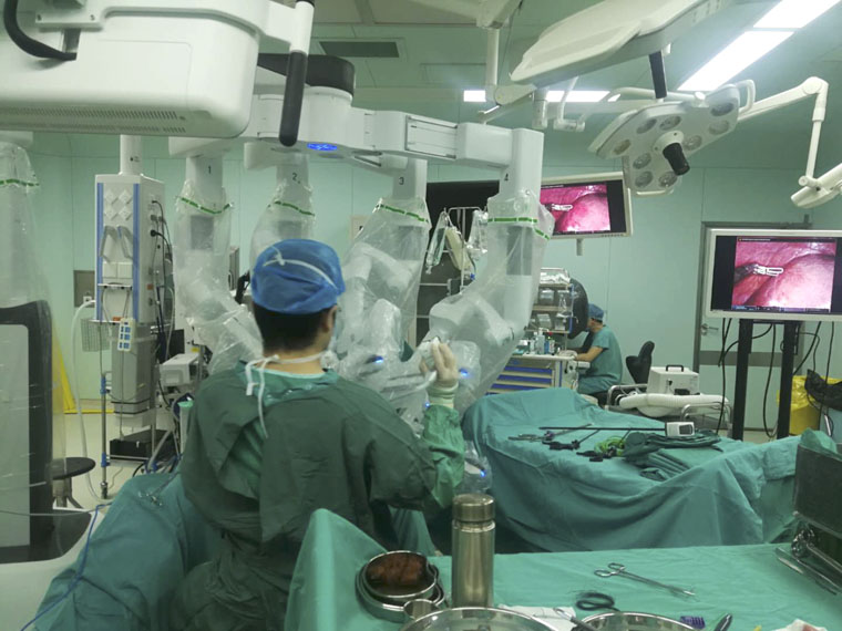 87日,我院外二科张振亚教授团队联合肝胆外科王顺祥教授团队完成达芬奇手术机器人辅助下的直肠癌根治性切除联合肝转移瘤切除术,这是河北省首例由达芬奇手术机器人完成的多脏器联合切除手术。