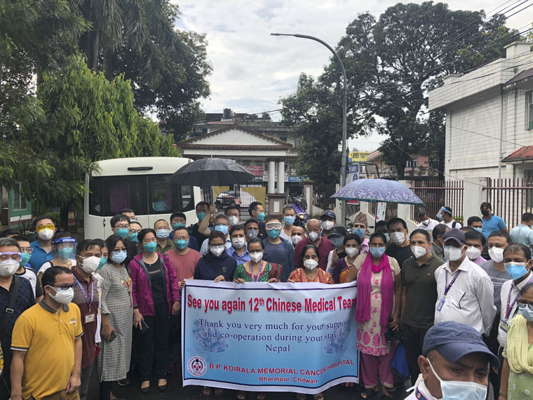 9月9日一大早,B.P.柯依拉腊纪念肿瘤医院的领导、同事聚集在大巴车前为第12批医疗队举行欢送仪式。医疗队员们与尼泊尔同事依依惜别,合影留念。“一年半的援外工作悄然而过,我收获的不只是辛苦,更多的是看见病人康复后的欣慰。我没有辜负党和国家交给我的任务,通过服务当地的每一个百姓,一点一滴增进着中尼友谊,并为在尼数万中国同胞提供医疗服务,这是非常值得的,我期待着在回归工作岗位后继续乘风破浪,砥砺前行”,倪晓辰副主任欣慰地说道。