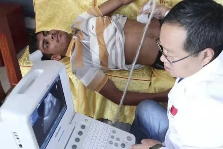 除了在受援医院开展手术、查房、会诊等工作,倪晓辰副主任随我国援尼泊尔医疗队多次组织义诊,到加德满都华人华侨协会、博卡拉华人华侨协会、红狮水泥尼泊尔公司、新希望尼泊尔公司、尼泊尔中华寺等为在尼泊尔的中国同胞免费体检、赠送各种常备药械药品、提供医疗咨询等,其中,倪晓辰进行了数千例泌尿系超声检查排查泌尿系结石和数场科普讲座。