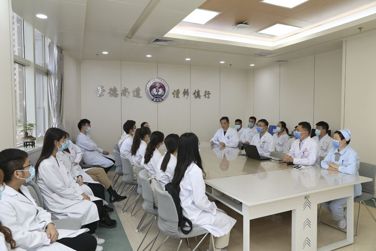 学业导师徐金升教授对同学们的到来表示欢迎,在介绍医院医、教、研等综合实力后,他贴心地询问同学们是否适应临床学习生活,详尽地解答了学生们的困惑,劝诫大家以医学为本,认真学习专业课程。“我院拥有雄厚的临床实力,优质的教学资源和优秀的教师团队,可以为大家提供肥沃的‘土壤’。作为学业导师送给大家一句话,‘笃学为根,明道为本,行方是规,智圆为准’,意为博极医源,精勤不倦,深悟医学之精髓;圆通领过,广博周备,方正有规不逾矩。”徐金升教授督促同学们要养成主动学习的习惯,进入临床后要坚持理论与实践的结合,继承与创新的结合,高尚品格与精湛技艺的结合。要把自己当做一名社会人去看待,要重视培养职业情感、提高职业素养、强化职业意识,努力成为一名有道德、有技能、有文化、有纪律的优秀医生。