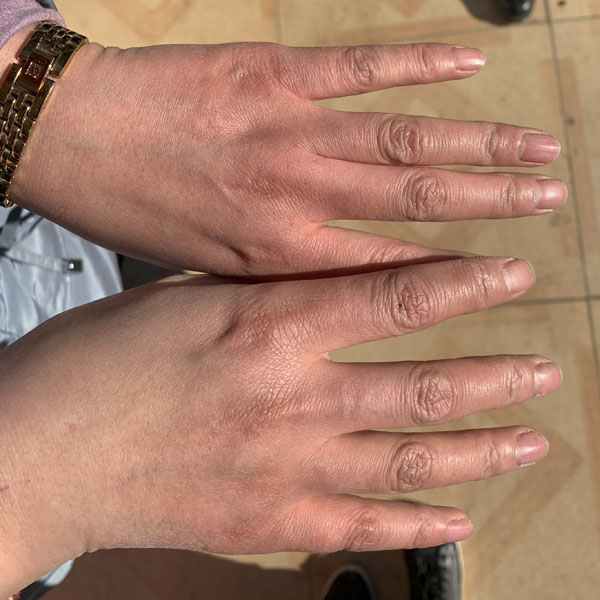 这两天是石家庄天气最寒冷的两天,又是户外工作,队员们都是把羽绒服穿在隔离衣里面,但是为了方便采集,手上只能戴一层薄薄的一层乳胶手套,一会的时间就完全冻透了,而且每采集一个病人都要拿手消喷洒消毒,有冷风吹来,就愈加的寒冷。而且为了节省防护物资和更快的完成任务,队员们经常都是连续工作8-10个小时,不吃不喝不上厕所。队员们工作完吃饭的时候,手套一摘,手全部都皴了,连筷子也都拿不住。朱希燕护士长双手都有腱鞘炎,由于寒冷和工作量大复发了,两只手都疼的非常厉害,但她一直坚持着,没有任何退缩。