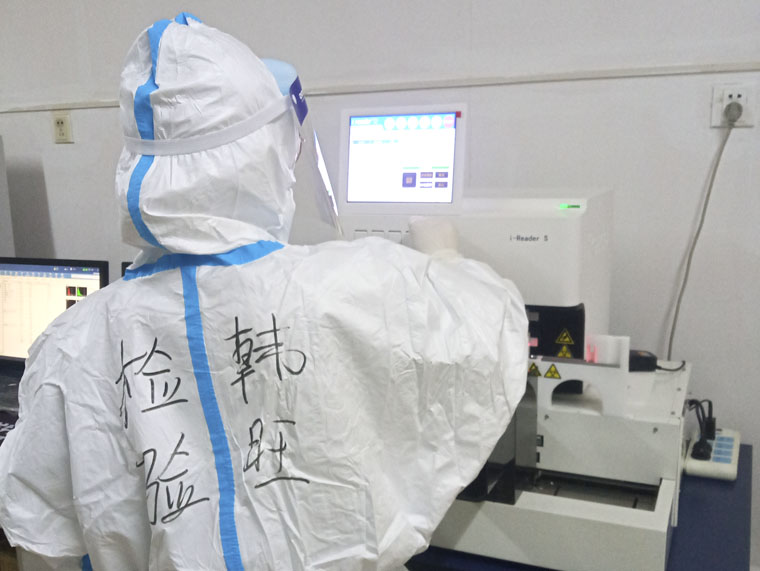 检验科韩旺在发热门诊积极工作,工作9年来,这是她第4次在医院过春节。