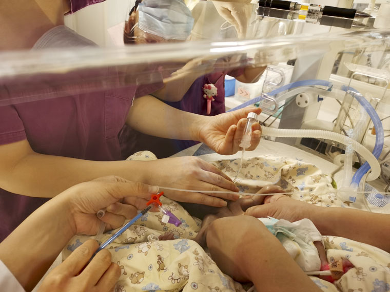 在东院区的新生儿室,医务工作者正在积极抢救一例25周的早产儿。