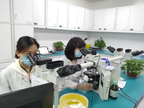 癌检中心杜芸带领科室人员坚守岗位,为临床处理疑难病例。