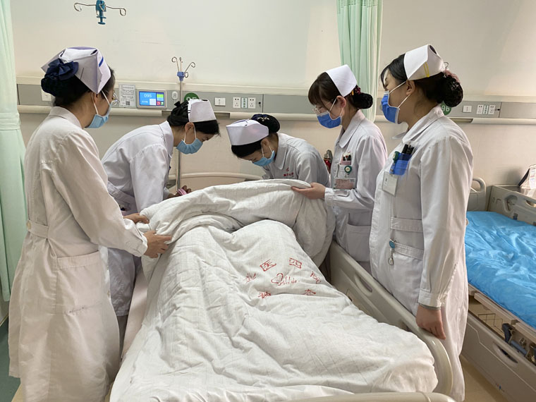 妇科三病区的护士姐妹为患者进行床旁护理。