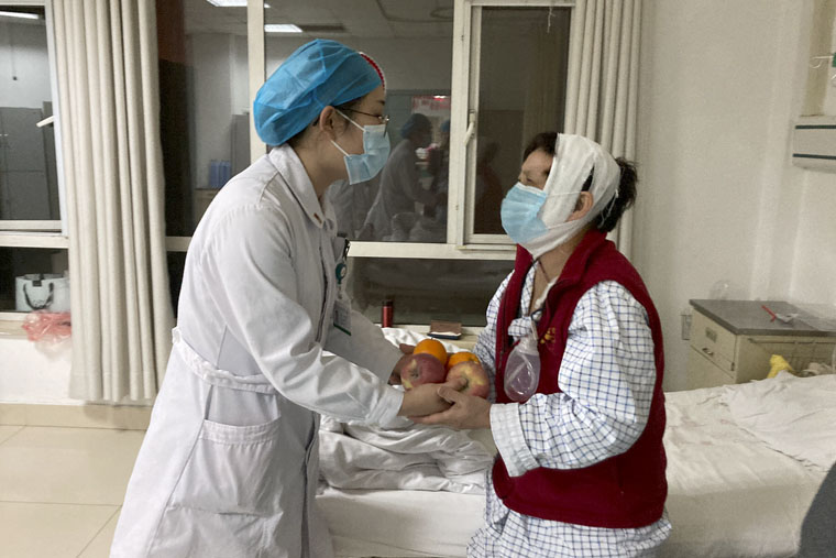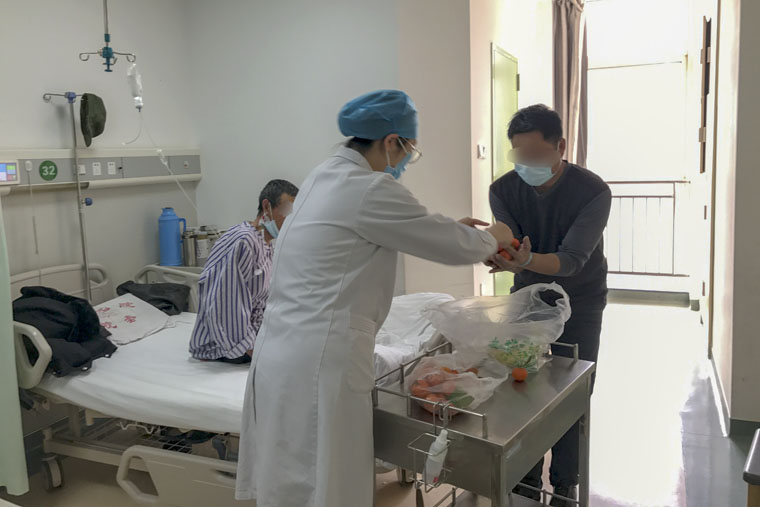 全科医学科张晓坤为患者送水果、送祝福。