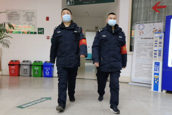 东院保卫处祁豪豪、任晓辰在门诊三楼进行安全巡逻。