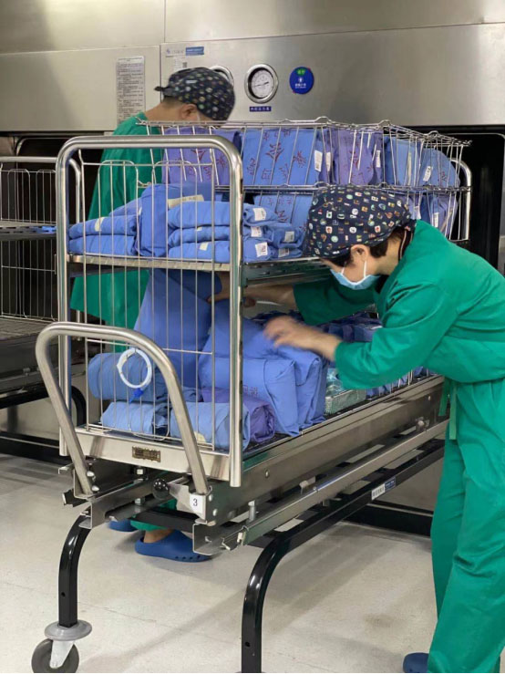 消毒供应中心的职工一丝不苟地进行着清洗、灭菌、检查、包装等工作,为医疗工作保驾护航。