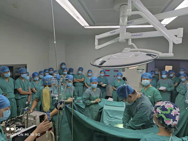 在抢救过程中,遇到患者突发休克、心脏骤停的情况,手术医生和器械护士紧急进行不间断体外心脏按压。其间,麻醉二线李伟靖发现患者室颤,指挥麻醉一线石鑫强进行体外除颤,经过连续两次除颤后,患者转回窦性心律。随后,主刀医生也止血成功,患者转危为安。抢救结束后,大家进行药品整理、检查抢救记录等工作。