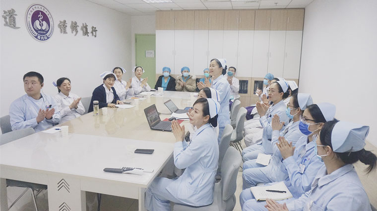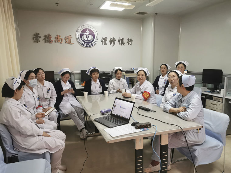 为加强护理管理队伍建设,提升我院内科系统护理管理者的管理水平,15日,护理部举办了以“团结 奉献 传承 创新”为主题的2021年内科系统护士长管理经验分享会。会议采用两个院区同步视频的方式进行,护理部主任李来有,副主任陈璐、赵晓燕、秦明祎,护理专家张彦茹、刘月芹、耿同会担任点评专家,李同妙、李翠珍护士长担任主持,21名护士长及6名护理管理进修人员参加。