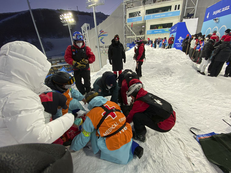 赛事正式开始,面对严寒和大风天气,在赛道点位站立6-8小时之久,还要时刻紧绷精神、准备救援,对每一名队员来说都是极大的挑战。28日,在单板障碍追逐赛中,一名运动员经过波浪道飞起落地时失衡,程子安即刻背好急救包登上雪板准备,接到救援指令后第一时间抵达运动员身旁进行查体,并将其搀扶移出赛道,护送至终点。29日,在单板障碍追逐赛中,一名运动员在赛道摔倒,自行站起后走到赛道边缘。李振华迅速赶到,运动员自诉右侧膝关节处疼痛,难以完赛,经与国际救援队员初步询问查体后,诊断为右侧膝关节外伤,李振华呼叫救援船予以紧急转运至运动员医疗站,在支具固定后送上救护车转运至定点医院。此外,李振华还在赛期及时救治了一名被运动员撞倒的工作人员。截止215日,这支“梦之队”共对21人进行救治,得到了国际雪联和冬奥组委的一致好评。