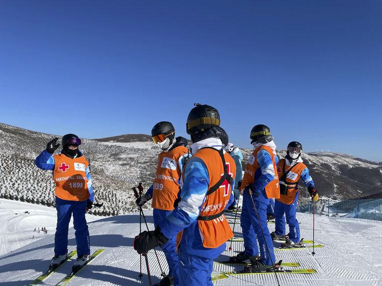 雪道救援作为保障任务的核心,是每一名滑雪医生必须熟练掌握的基本技能,因为比赛要求滑雪医生必须在4分钟内到达运动员受伤地点,10分钟内转运出赛道。尽管既往的培训演练也都是按这一标准进行的,但真到赛事时,每一名队员都感到压力倍增。整个比赛期间,“梦之队”顺利完成了此次赛事的保障任务并得到了场馆领导和冬奥组委领导的一致认可。