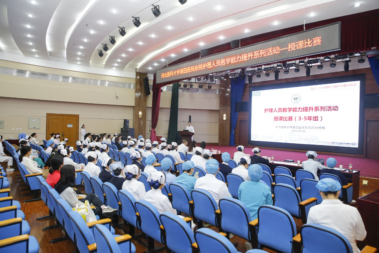 本次比赛是护理人员教学能力提升系列活动之一,前期分别进行了教学技能培训、各专业授课选拔赛等环节。决赛中,副院长何宏涛、彭利出席,医疗管理评委李杰、邢鹏辉,临床教学评委贾慧群、杨志芬与护理教学办公室李志红、段红霞、部分临床科护士长、医大护理教学课程负责人等评委参加,同时20名护理实习生担任学生评委。比赛分为工作3-5年的“青春活力组”和工作6-10年的“中流砥柱组”。
