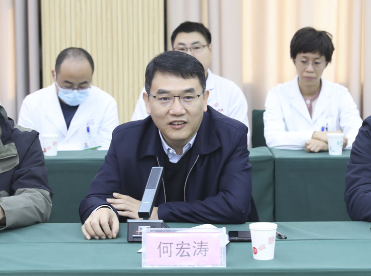 何宏涛副院长表示,对口帮扶是国家健康中国战略的总体要求之一,医院党委高度重视,受医院委托,在春节前夕对我院队员进行慰问。他指出,通过对口帮扶,引导省级优质资源下沉,不断推动县级医院综合实力提升,让人民群众就近享有高水平的医疗服务。他强调,下一步继续加强支援医院和受援医院的联系,探索不同的对口帮扶形式,促进双方医院共同发展,为保障广大患者生命健康继续作出新的更大贡献。
