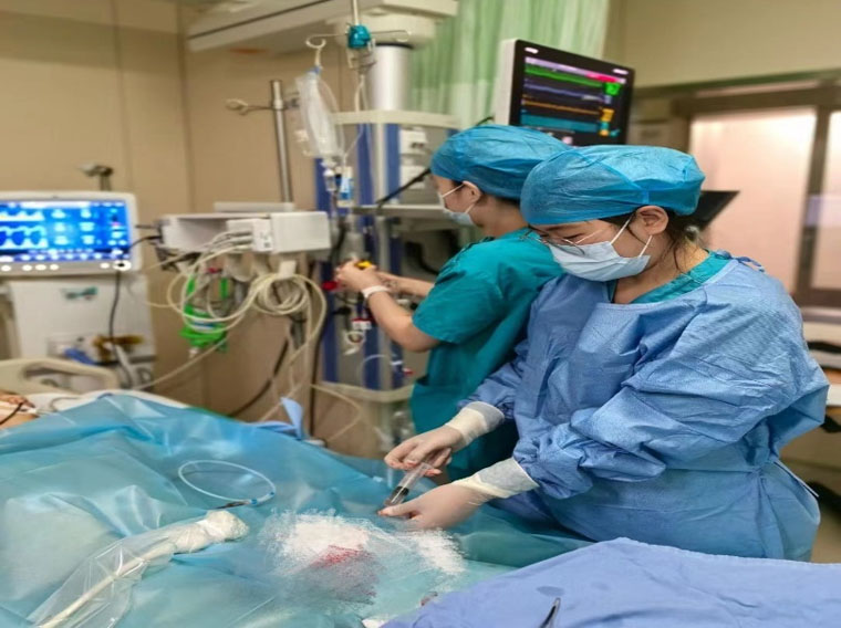 这是我院首次开展儿童ECMO,儿童血管不同于成人,需要更加精准的血管评估、更加严密的治疗方案。通过血管评估、物品准备、上机准备、管路预冲、穿刺置管等,仅1小时,医务人员将ECMO成功运转,患儿循环趋于稳定。为充分降低心脏的后负荷,ECMO团队又紧急植入IABP辅助治疗,患儿情况得到明显改善。