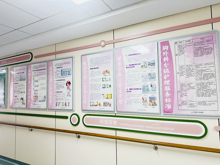 科室每个病区的文化墙上都有贴合本科特色的宣教知识,纸质版宣教手册方便患者随时取阅,心外科护士自制手绘图方便与带气管插管患者沟通,各病区公众号及时发布科普宣教内容,护士录制各种宣教视频在病区电子屏循环播放……此外,根据患者具体情况,责任护士采取一对一宣教和集中宣教相结合的方式,确保达到预期效果,促进患者术后快速康复。