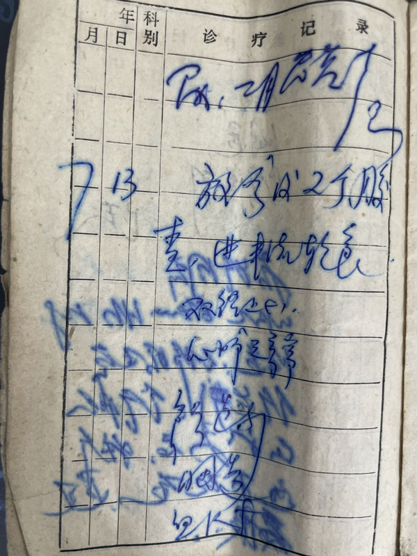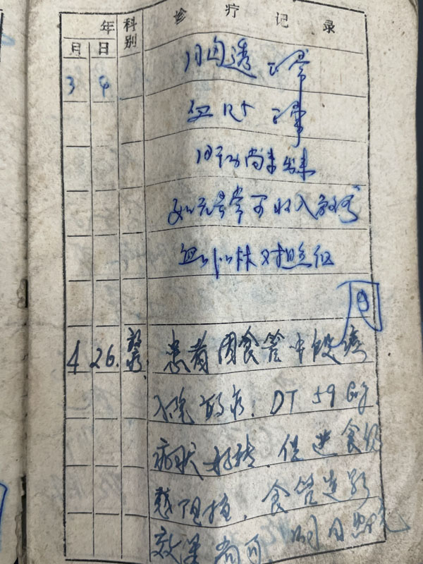 从病历本中,能够清晰地看到,这名患者每次就诊时的症状如何、查体情况、接受放疗次数,每次血液学及造影报告对病情的评估,一字一句、简洁明了,无论是周道安主任,还是乔田奎主任,还有陈秋立教授、朱孝珍教授、王敬一老师,他们都曾对这位病人认真诊治。原来,这是36年前曾经在放疗科接受治疗的一名患者,几十年来,她一直在我院放疗科就诊,期间很多前辈已经退休,而这位老奶奶此刻仍安然出现在我们眼前,激动、自豪、担忧,种种情绪搅乱了我的内心,眼眶竟不自觉湿润起来。