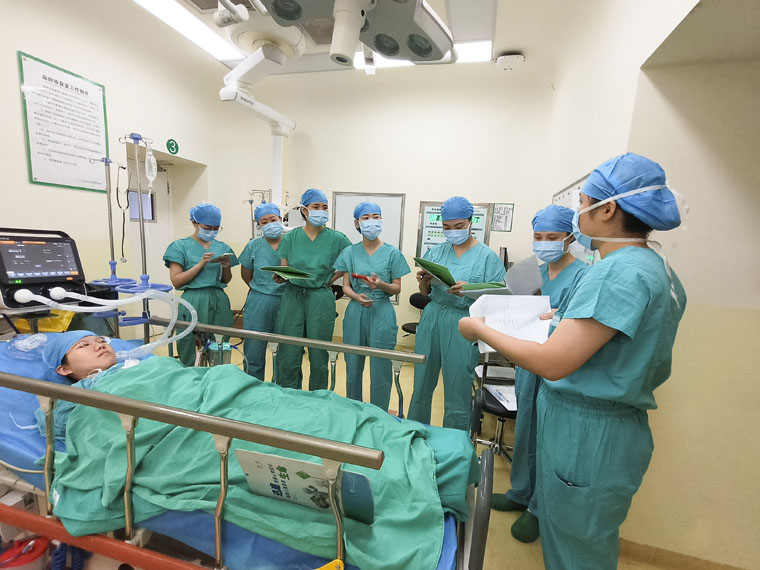 麻醉科基地的培训课程涉及麻醉学、护理、管理、教学科研与人文等各个方面,内容丰富、实用性强,全方位地体现了本专业热点和难点。期间,通过真人模拟、现场演示等方式,老师们带领学员深入学习心肺复苏+除颤、简易呼吸器两项通科项目和四项专科项目。