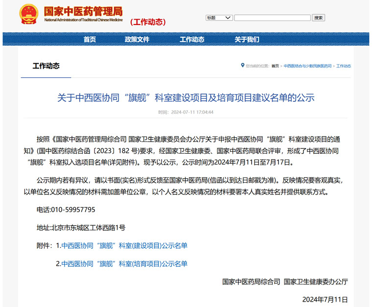 我院中医科入选国家中医药管理局中西医协同“旗舰”科室建设项目
