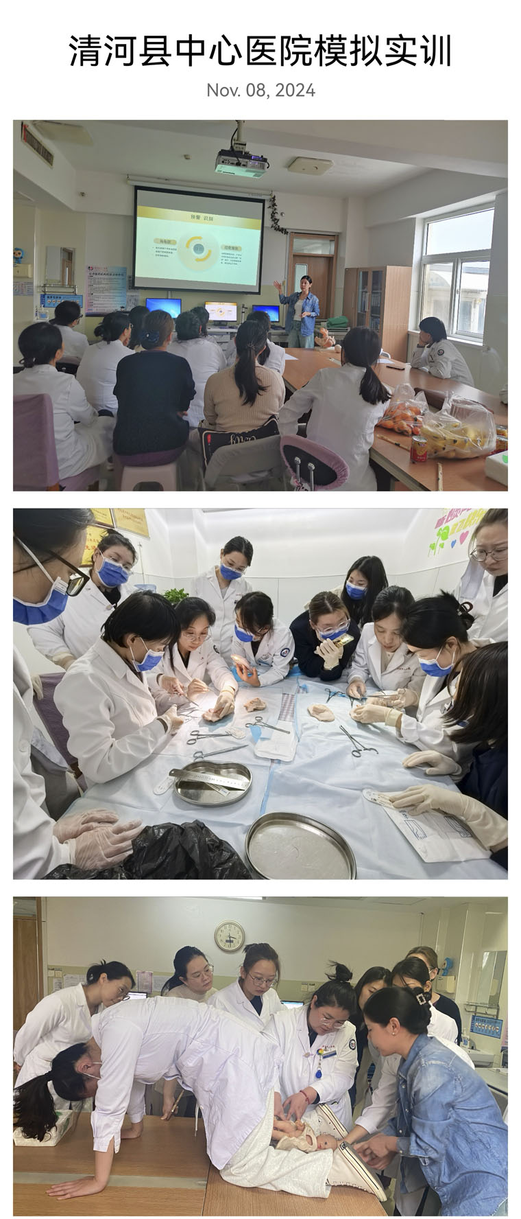 11月8-10日,河北省妇幼保健协会模拟医学专委会主任委员、我院东院产科负责人杨志芬带队,携同产科副主任路月梅及秦玉珍、郑芮和刘广谱医生,分别在邢台市清河县中心医院和隆尧县医院开展专委会产科模拟实训清河县中心医院副院长刘冰和隆尧县医院常务副院长孟彦宁出席开幕式并致辞60位妇幼保健医护人员参与培训。