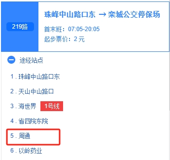 路线(4):可以乘坐219路在周通站下车