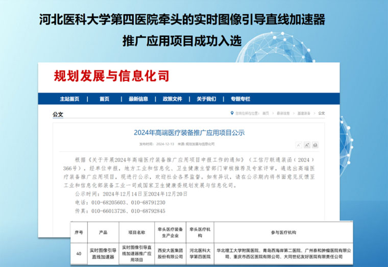 我院牵头的“实时图像引导直线加速器推广应用项目”入选国家2024年高端医疗装备推广应用项目
