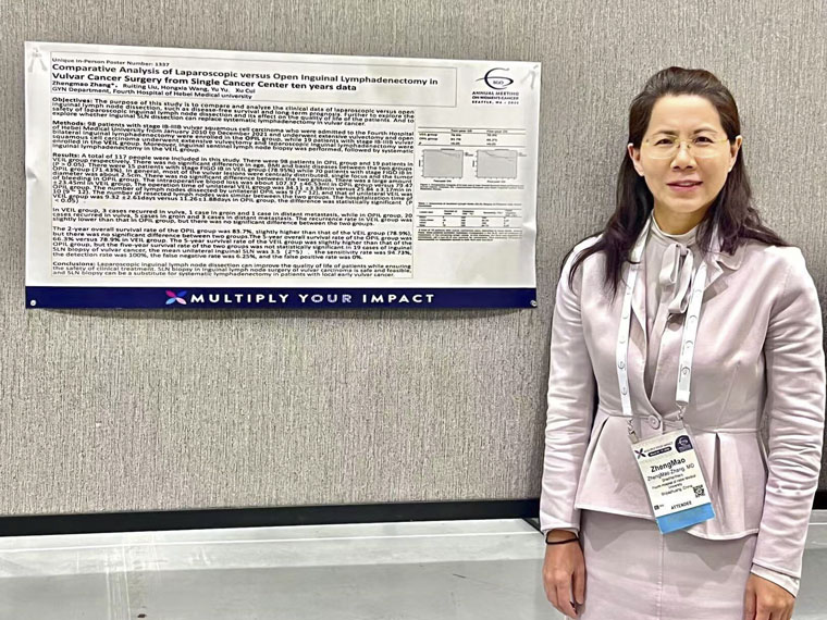 作为河北省医师协会微创外科医师分会的主任委员和河北省抗癌协会腔镜与机器人专业委员的主任委员,张正茂教授率领团队早在2013年即开展了早期外阴癌腹腔镜微创手术的临床研究工作,至今已深耕12年。本次在国际顶尖学术会议发表研究成果,充分体现了在我院党委的正确领导下,妇科微创手术取得的长足发展。妇科肿瘤团队将不断吸纳肿瘤诊治的前沿理念,锐意进取、开拓创新,为医院高质量发展贡献更多力量,为广大患者提供更优质的医疗服务。