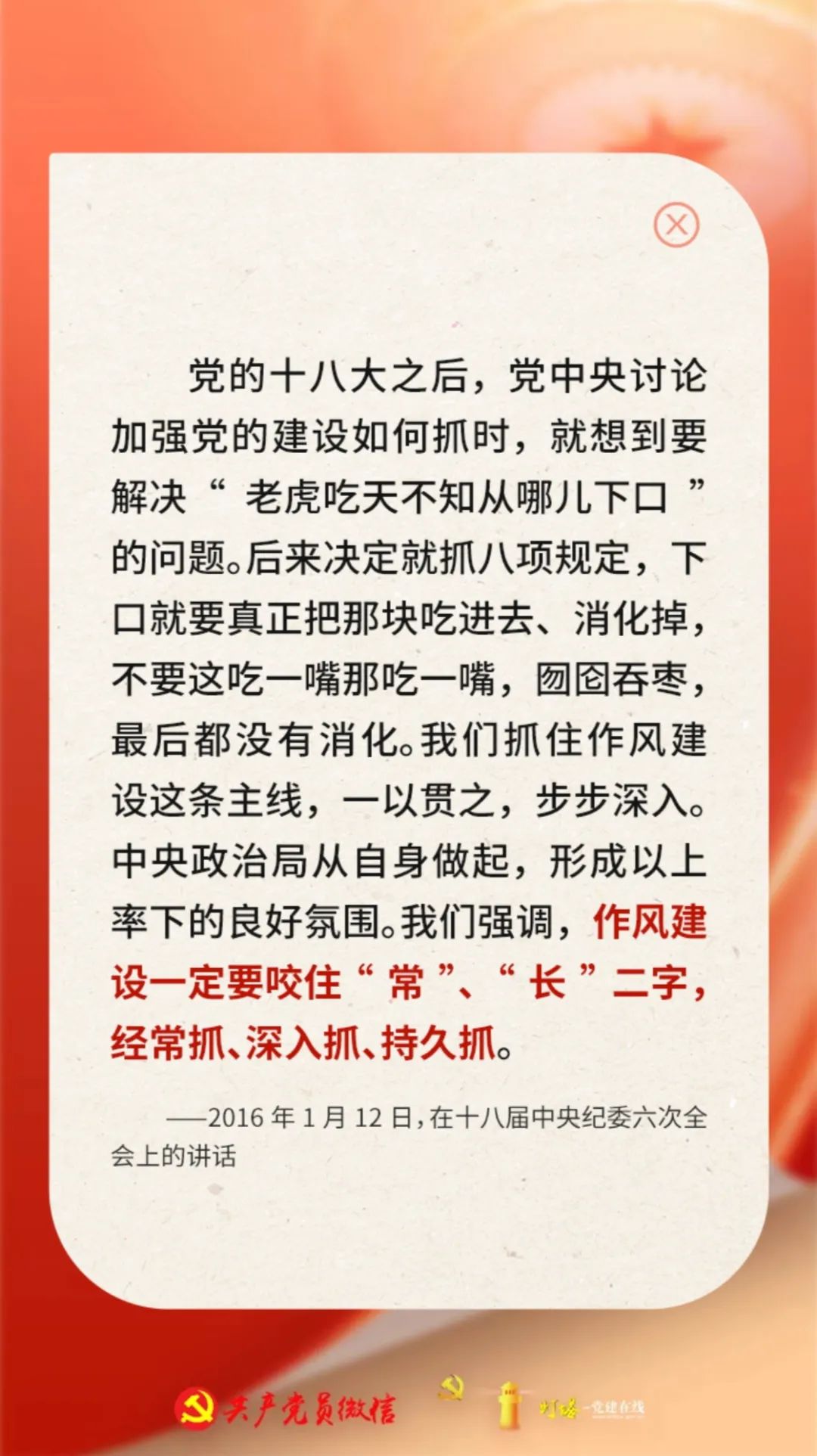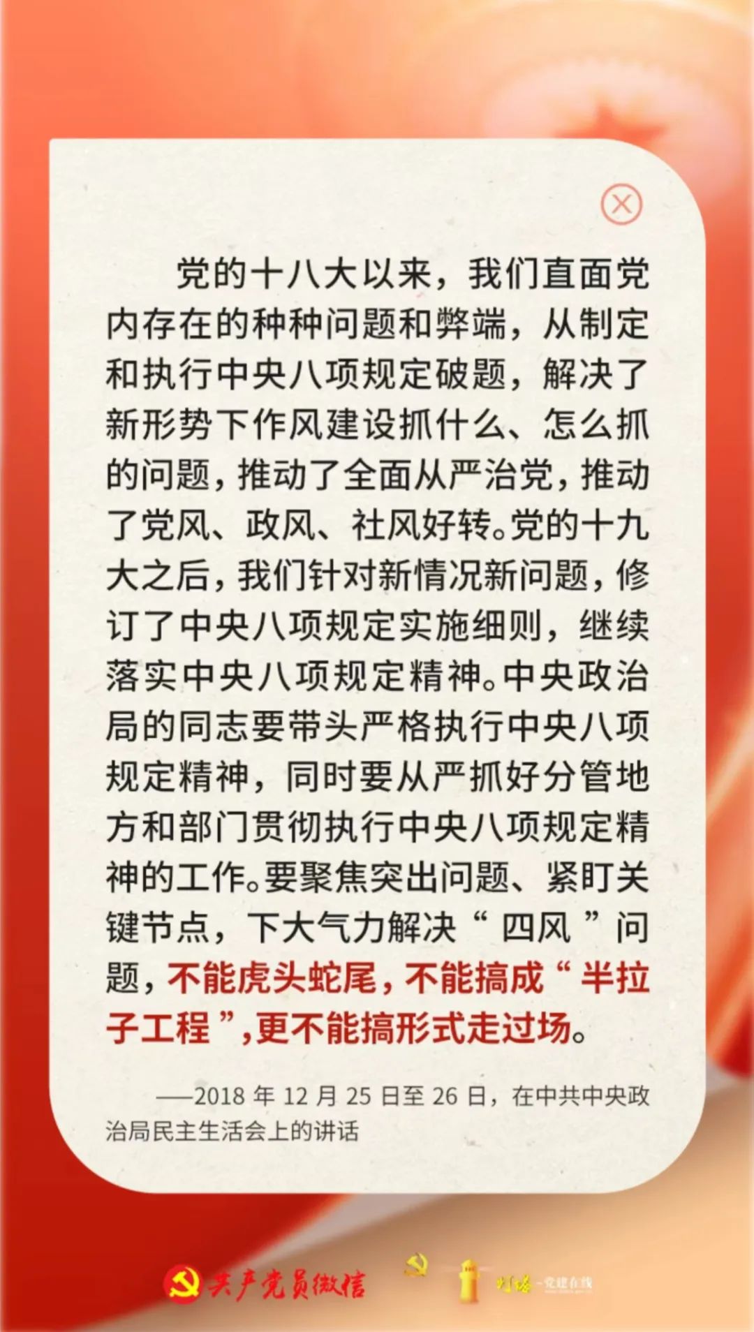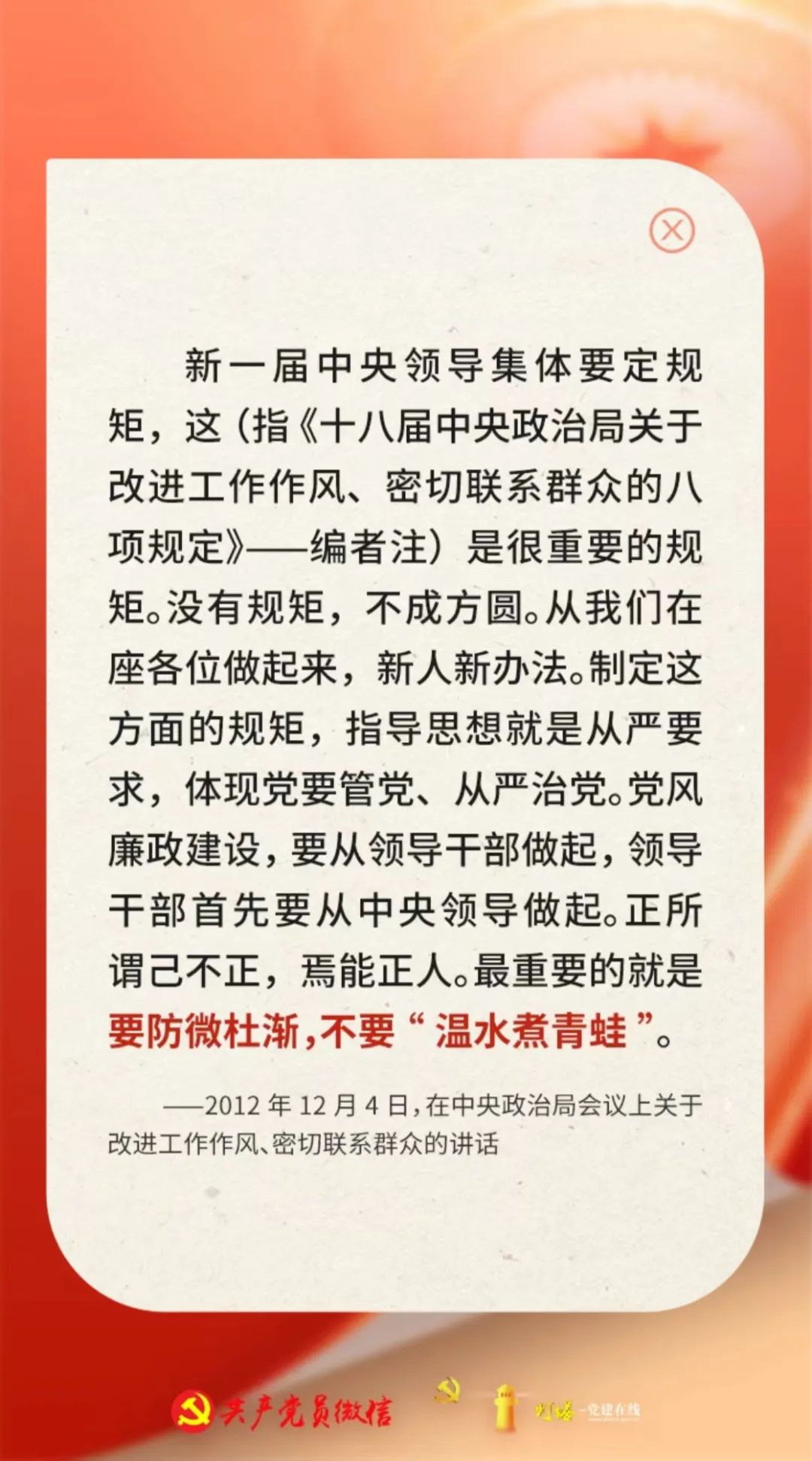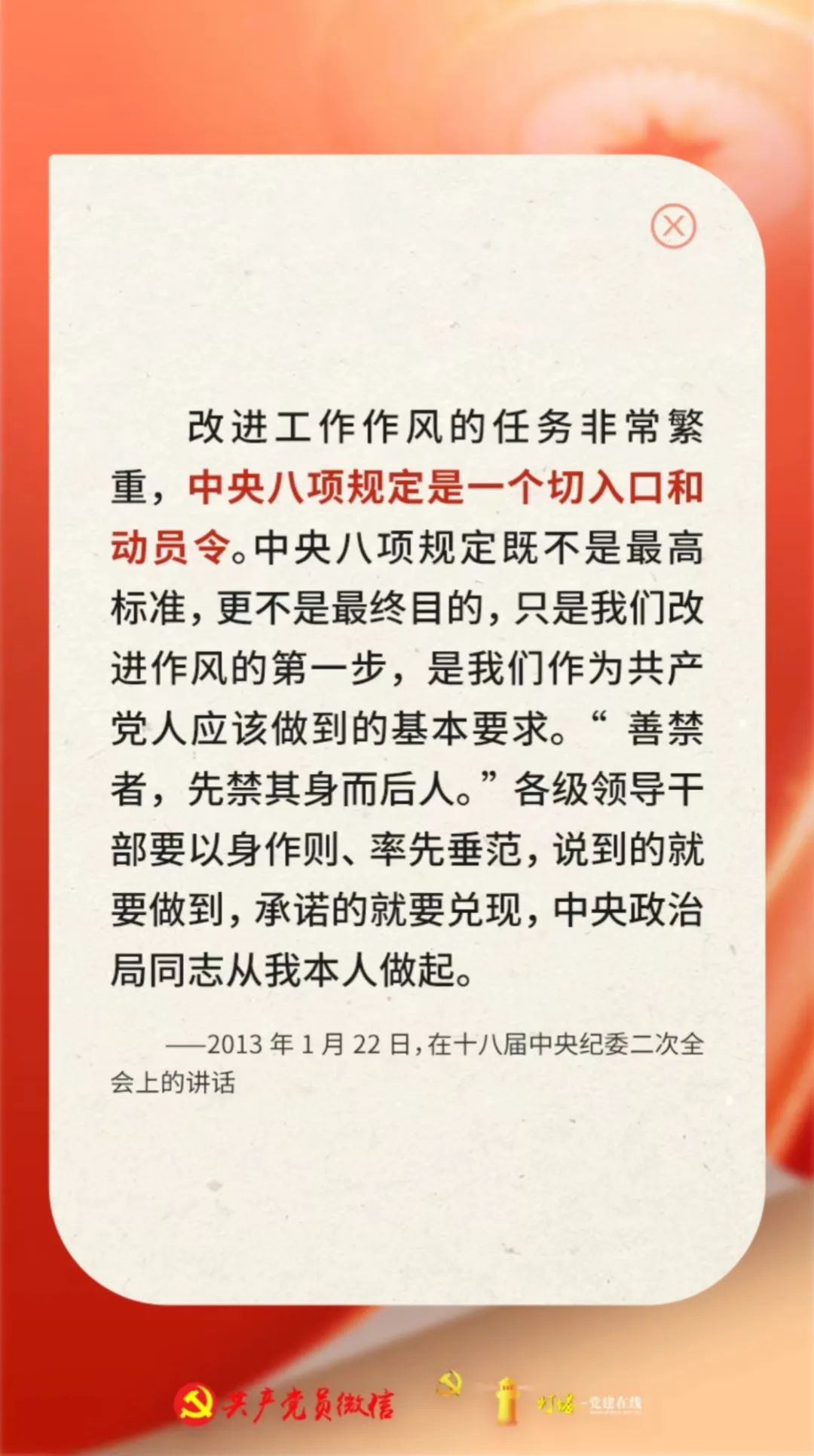深入贯彻中央八项规定精神学习教育正在全党开展。这是中国共产党人以自我革命精神引领时代风气之先的再宣誓,是以中央八项规定“关键子”盘活作风建设“整盘棋”的再出发。党的十八大以来,习近平总书记多次强调以八项规定为切入点,驰而不息推进党风廉政建设,将全面从严治党推向纵深。
