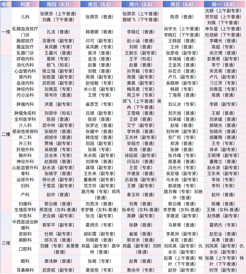 专家云集,假日无休!“五一”期间出诊时间表速览→