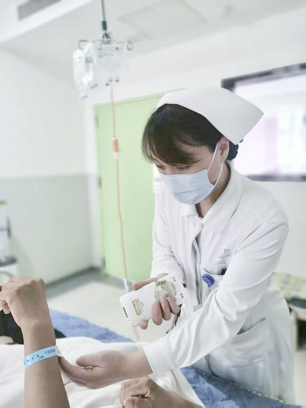 实习结束后,幸运之神再次眷顾我,被分配到肿瘤内科,顺利留院工作。一次值班,一位输注化疗药的阿姨突发药物过敏,情况危急,意识模糊。我和同事们立刻投入紧张的抢救中,吸氧、用药、监测生命体征,每一个动作都分秒必争。抢救过程中,我注意到阿姨的手紧紧抓着床单,像是在黑暗中寻找依靠。我轻轻握住她的手,在她耳边轻声安抚,“别怕,我们都在呢”。或许是感受到了我的安慰,阿姨的手渐渐放松下来。经过几个小时的全力抢救,阿姨的病情终于稳定。看着阿姨逐渐恢复健康,我心中满是欣慰,之前的疲惫与辛苦都化作了满满的成就感。