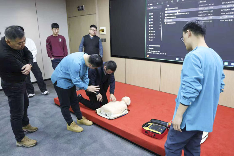 本次培训以“实战化、场景化”为核心,聚焦“急救黄金三分钟”,重点围绕心肺复苏(CPR)技术、自动体外除颤器(AED)使用及外伤应急处理三大模块展开。在心肺复苏教学中,医护人员通过模拟真实心脏骤停场景,拆解胸外按压深度、频率、人工呼吸配合等操作要点,强调“按压不间断”“气道开放”等核心原则;针对AED使用,现场设置操作体验区,指导职工亲手操作设备,跟随语音提示完成电极片粘贴、模拟除颤等全流程演练,消除对专业设备的使用顾虑。