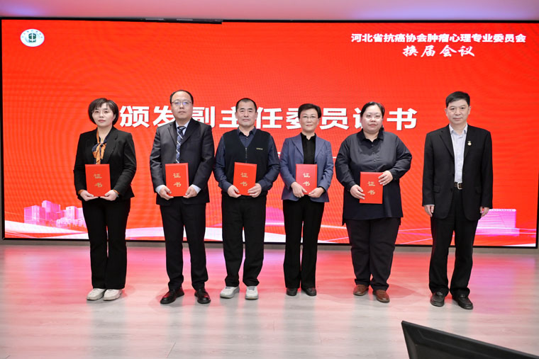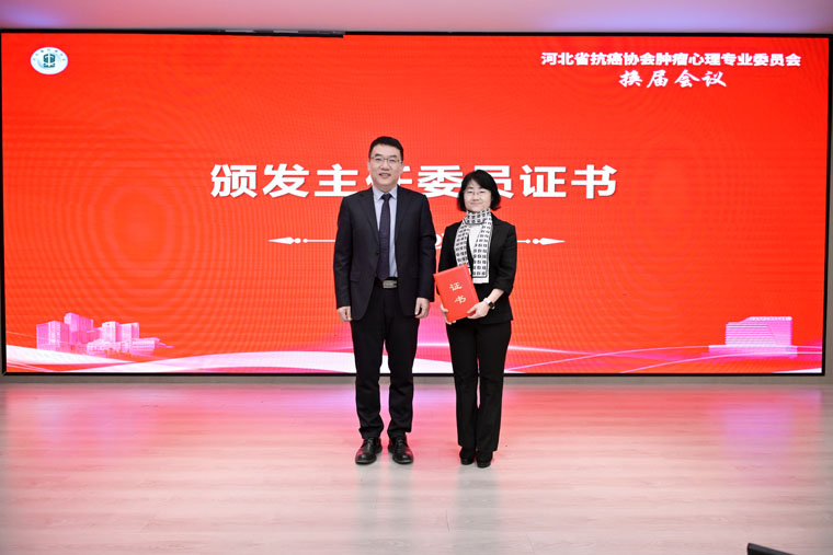 换届环节由河北省抗癌协会副秘书长李来有教授主持。协会组织部部长何明教授宣读换届批复文件,我院肿瘤内科洪雷副教授代表第二届主任委员张静教授做了工作总结汇报。经选举,我院肿瘤内科崔彦芝教授担任第三届肿瘤心理专委会主任委员,洪雷副教授当选副主任委员。
