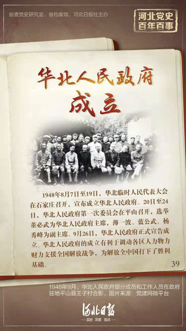 党史学习教育|河北党史百年百事三十八:华北人民政府成立