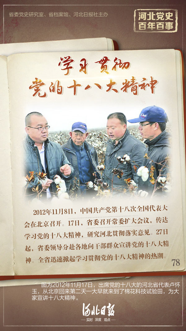 党史学习教育|河北党史百年百事七十:学习贯彻党的十八大精神