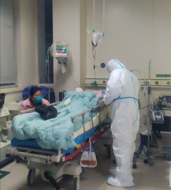 在特殊时期,科室床位紧张、人员紧缺,工作任务繁重且感染风险极大。王澜涛主任带领医疗护理骨干执行闭环管理、坚守岗位,111日至30日,科室每天在岗40余人,外派医护执行支援任务12人,接诊人次超3500人,其中抢救危重患者(二级以上)100多人次,曾在一天内连续复苏抢救5人。由于肿瘤患者治疗周期长、用药连续性强,这些治疗多数也在急诊输液室进行,平均每天约70人,最多一天达93人,医护人员承受着巨大压力。