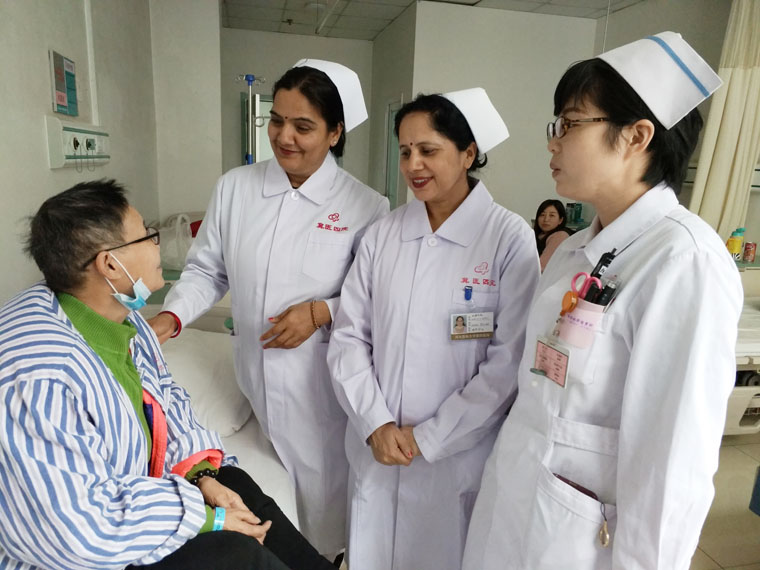 血液内科还承担了对口援助尼泊尔的任务。2018年,尼泊尔B.P.柯伊拉腊纪念肿瘤医院2名护理人员,来科室进修造血干细胞采集和移植等相关内容。今年6月,牛秀然副护士长将远赴尼泊尔,援助该院移植病房的建设,为造血干细胞移植提供护理技术指导。