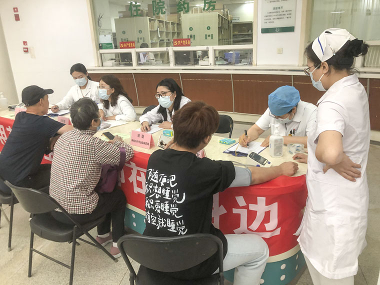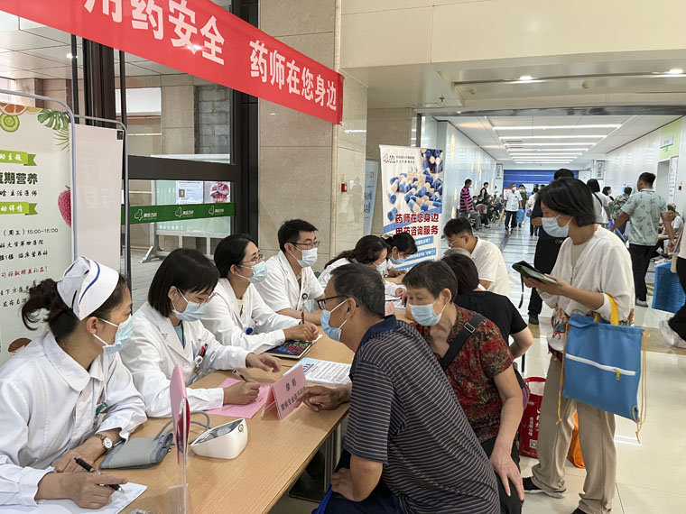 6月28日,为扎实推进学习贯彻习近平新时代中国特色社会主义思想主题教育,践行为民服务宗旨,我院第27、54党支部在两院区开展“守护用药安全 药师在您身边”合理用药宣传和咨询服务活动,药学专家、专科临床药师、药师及护士共18人参与,为百余名患者、群众提供药物健康咨询、测量血压等服务。