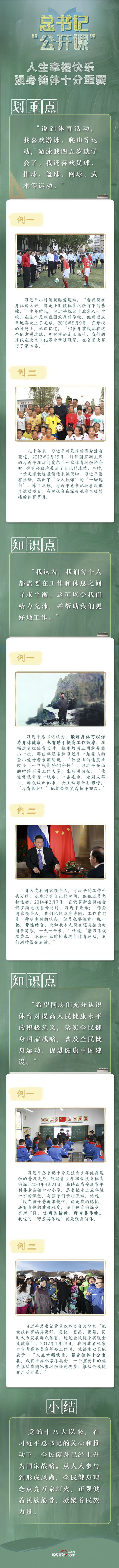 “人生幸福快乐,强身健体十分重要。”习近平总书记是全民健身的倡导者、引领者,也是身体力行的实践者。本期《总书记“公开课”》,让我们一起走近“体育爱好者”习近平,了解学习他关于普及全民健身运动的深邃思考。